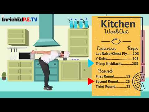 PE Chef: Kitchen Workout Matt Barker (Digit the APE) 5 years ago Advertisements 12 minute deltion, tricep and chest workout. Using fruit, water bottles of cans of food.